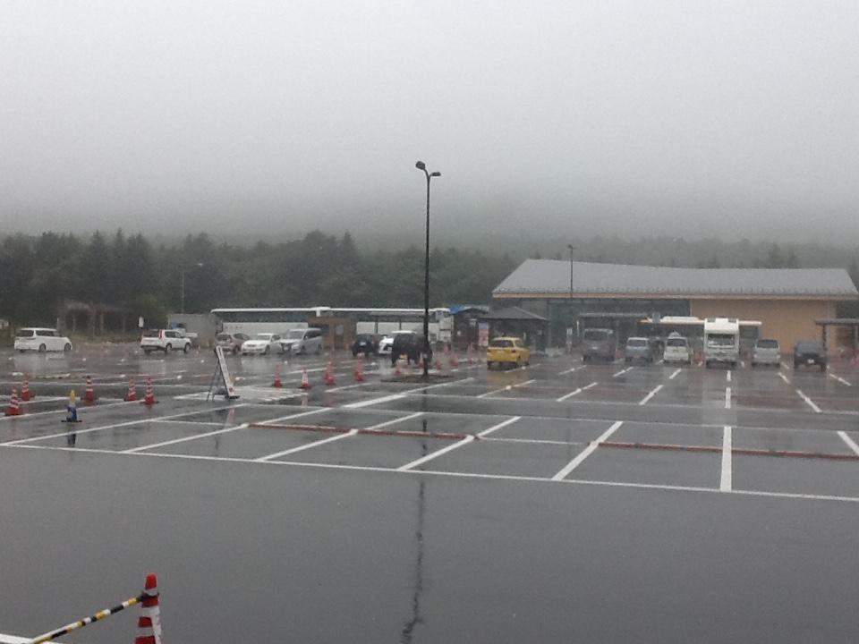 14時 バスには4人、6.5合辺りまで一瞬見えたが直ぐガスに覆われた。台風の影響により、御殿場行きの路線バスは運休とのこと。