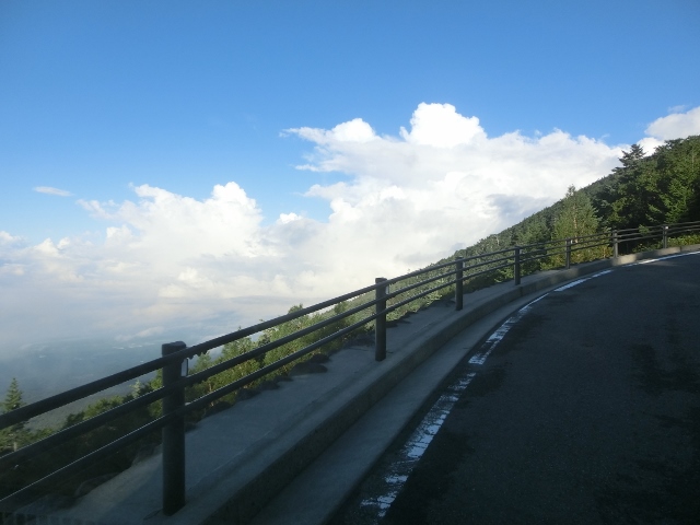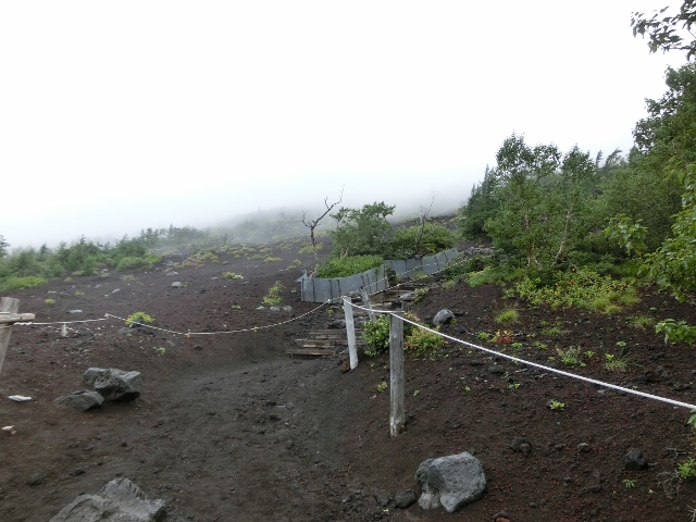 6:30現在、山頂気温:5.4℃、五合目は12.9℃で無風。山頂付近までよくみえるが、西南西の風5〜6m/secか。 朝の内は良く見えても、予報は「曇りか霧で、午後は発雷の恐れあり」湿気があることから積雲と層雲が積乱雲に発達するものとみられる。